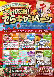 キャンペーン情報 · 2024/12/11 『家計応援! でらキャンペーン』 の情報をアップしました 『家計応援! でらキャンペーン』の情報をアップしました。 今こそおトク! 商店街へいこう! キャンペーン期間/2025年1月10日(金)~2月15日(土) ≫ キャンペーン情報 ページをご参照ください tagPlaceholderカテゴリ: campaign